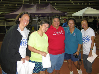 Edwina Kalahiki, Liane Sing, Mona Hall Neill, Jonia Leong Kamada and Debbie Lau Okamura take a break from walking to get the luminaria ceremony ready. Liane recently survived cancer surgery.